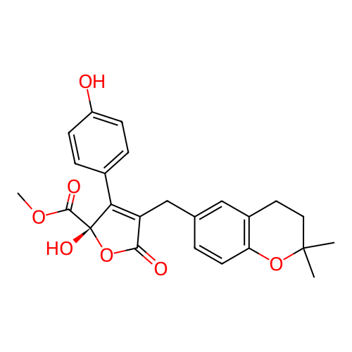 | InChI | InChI=1S/C24H24O7/c1-23(2)11-10-16-12-14(4-9-19(16)30-23)13-18-20(15-5-7-17(25)8-6-15)24(28,22(27)29-3)31-21(18)26/h4-9,12,25,28H,10-11,13H2,1-3H3/t24-/m0/s1 |