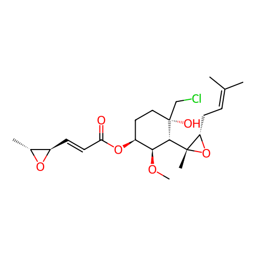 | SMILES | C[C@@H]1[C@H](O1)/C=C/C(=O)O[C@H]2CC[C@]([C@@H]([C@H]2OC)[C@@]3([C@@H](O3)CC=C(C)C)C)(CCl)O |