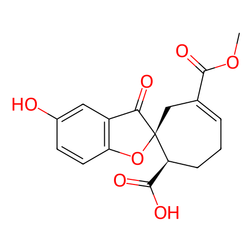 | InChI | InChI=1S/C17H16O7/c1-23-16(22)9-3-2-4-12(15(20)21)17(8-9)14(19)11-7-10(18)5-6-13(11)24-17/h3,5-7,12,18H,2,4,8H2,1H3,(H,20,21)/t12-,17-/m0/s1 |