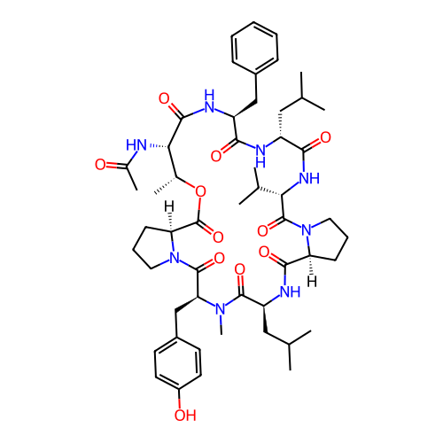 | SMILES | C[C@@H]1[C@@H](C(=O)N[C@H](C(=O)N[C@@H](C(=O)N[C@H](C(=O)N2CCC[C@H]2C(=O)N[C@H](C(=O)N([C@H](C(=O)N3CCC[C@H]3C(=O)O1)CC4=CC=C(C=C4)O)C)CC(C)C)C(C)C)CC(C)C)CC5=CC=CC=C5)NC(=O)C |