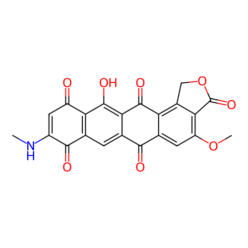 | SMILES | CNC1=CC(=O)C2=C(C1=O)C=C3C(=C2O)C(=O)C4=C5COC(=O)C5=C(C=C4C3=O)OC |