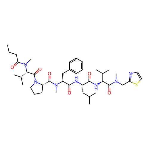 | SMILES | CCCC(=O)N(C)[C@@H](C(C)C)C(=O)N1CCC[C@H]1C(=O)N(C)[C@@H](CC2=CC=CC=C2)C(=O)N[C@@H](CC(C)C)C(=O)N[C@@H](C(C)C)C(=O)N(C)CC3=NC=CS3 |