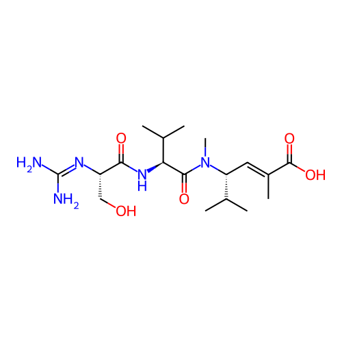 | SMILES | CC(C)[C@@H](/C=C(\C)/C(=O)O)N(C)C(=O)[C@H](C(C)C)NC(=O)[C@H](CO)N=C(N)N |
