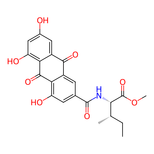 | InChI | InChI=1S/C22H21NO8/c1-4-9(2)18(22(30)31-3)23-21(29)10-5-12-16(14(25)6-10)20(28)17-13(19(12)27)7-11(24)8-15(17)26/h5-9,18,24-26H,4H2,1-3H3,(H,23,29)/t9-,18-/m0/s1 |