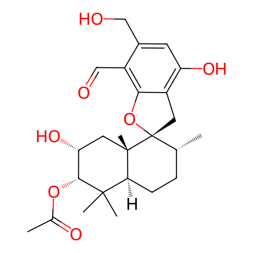 | InChI | InChI=1S/C25H34O7/c1-13-6-7-20-23(3,4)22(31-14(2)28)19(30)10-24(20,5)25(13)9-16-18(29)8-15(11-26)17(12-27)21(16)32-25/h8,12-13,19-20,22,26,29-30H,6-7,9-11H2,1-5H3/t13-,19-,20+,22-,24+,25-/m1/s1 |