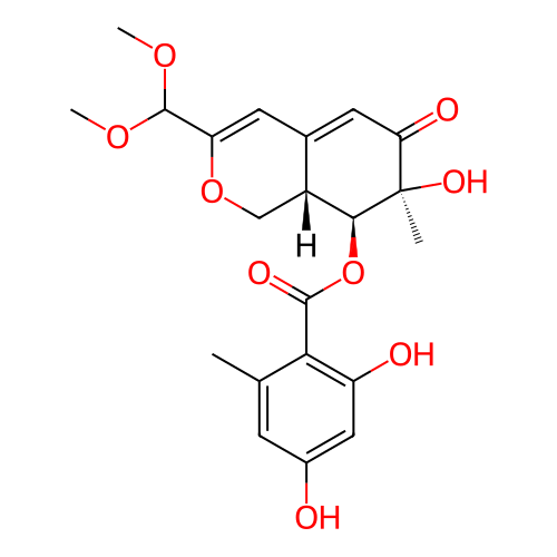| InChI | InChI=1S/C21H24O9/c1-10-5-12(22)8-14(23)17(10)19(25)30-18-13-9-29-15(20(27-3)28-4)6-11(13)7-16(24)21(18,2)26/h5-8,13,18,20,22-23,26H,9H2,1-4H3/t13-,18+,21-/m1/s1 |