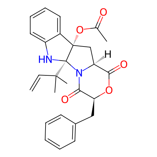 | SMILES | CC(=O)O[C@]12C[C@H]3C(=O)O[C@H](C(=O)N3[C@]1(NC4=CC=CC=C24)C(C)(C)C=C)CC5=CC=CC=C5 |
