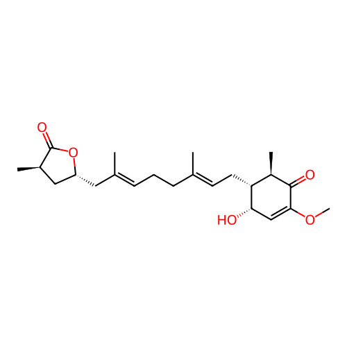 | SMILES | C[C@@H]1C[C@H](OC1=O)C/C(=C/CC/C(=C/C[C@@H]2[C@H](C(=O)C(=C[C@@H]2O)OC)C)/C)/C |