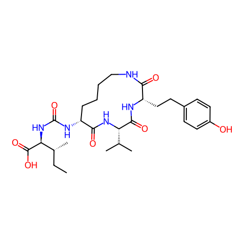 | SMILES | CC[C@@H](C)[C@@H](C(=O)O)NC(=O)N[C@@H]1CCCCNC(=O)[C@@H](NC(=O)[C@@H](NC1=O)C(C)C)CCC2=CC=C(C=C2)O |