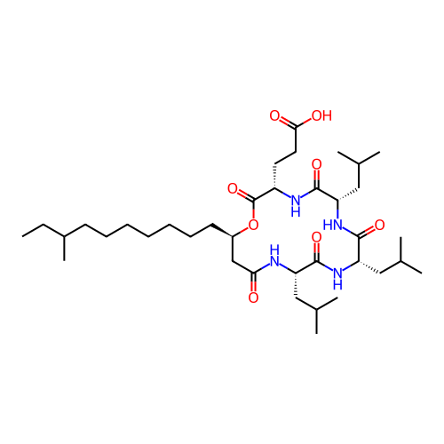 | SMILES | CCC(C)CCCCCCC[C@@H]1CC(=O)N[C@H](C(=O)N[C@H](C(=O)N[C@H](C(=O)N[C@H](C(=O)O1)CCC(=O)O)CC(C)C)CC(C)C)CC(C)C |