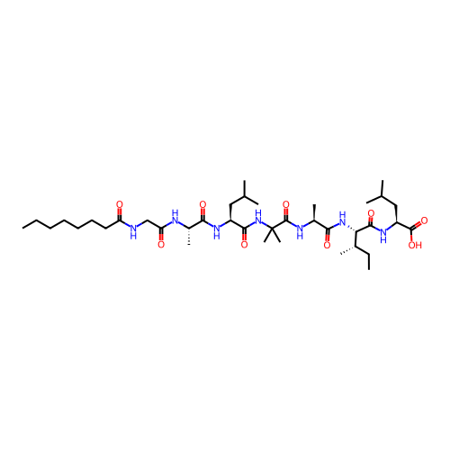 | SMILES | CCCCCCCC(=O)NCC(=O)N[C@@H](C)C(=O)N[C@@H](CC(C)C)C(=O)NC(C)(C)C(=O)N[C@@H](C)C(=O)N[C@@H]([C@@H](C)CC)C(=O)N[C@@H](CC(C)C)C(=O)O |