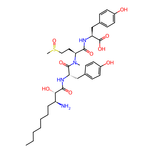 | SMILES | CCCCCCC[C@H](N)[C@H](O)C(=O)N[C@@H](CC1=CC=C(O)C=C1)C(=O)N(C)[C@@H](CCS(C)=O)C(=O)N[C@@H](CC1=CC=C(O)C=C1)C(=O)O |