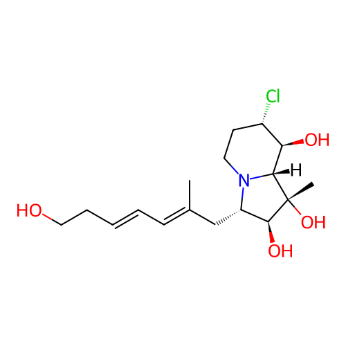 | InChI | InChI=1S/C17H28ClNO4/c1-11(6-4-3-5-9-20)10-13-16(22)17(2,23)15-14(21)12(18)7-8-19(13)15/h3-4,6,12-16,20-23H,5,7-10H2,1-2H3/b4-3+,11-6+/t12-,13-,14+,15+,16-,17-/m0/s1 |