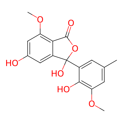 | InChI | InChI=1S/C17H16O7/c1-8-4-11(15(19)13(5-8)23-3)17(21)10-6-9(18)7-12(22-2)14(10)16(20)24-17/h4-7,18-19,21H,1-3H3 |