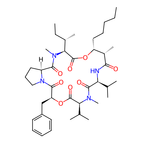 | SMILES | CCCCC[C@@H]1[C@@H](C(=O)N[C@H](C(=O)N([C@H](C(=O)O[C@H](C(=O)N2CCC[C@H]2C(=O)N([C@H](C(=O)O1)[C@@H](C)CC)C)CC3=CC=CC=C3)C(C)C)C)C(C)C)C |