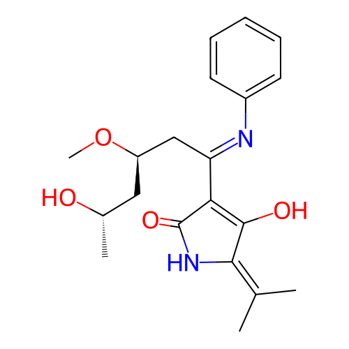 | SMILES | C[C@@H](C[C@H](CC(=NC1=CC=CC=C1)C2=C(C(=C(C)C)NC2=O)O)OC)O |