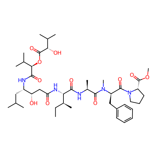 | InChI | InChI=1S/C43H69N5O11/c1-12-27(8)35(46-34(50)23-33(49)30(21-24(2)3)45-39(53)37(26(6)7)59-43(57)36(51)25(4)5)38(52)44-28(9)40(54)47(10)32(22-29-17-14-13-15-18-29)41(55)48-20-16-19-31(48)42(56)58-11/h13-15,17-18,24-28,30-33,35-37,49,51H,12,16,19-23H2,1-11H3,(H,44,52)(H,45,53)(H,46,50)/t27-,28-,30-,31-,32+,33-,35-,36-,37+/m0/s1 |