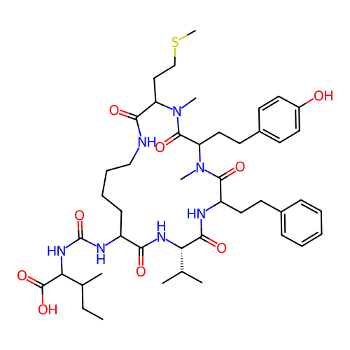 | SMILES | CCC(C)C(C(=O)O)NC(=O)NC1CCCCNC(=O)C(N(C(=O)C(N(C(=O)C(NC(=O)[C@@H](NC1=O)C(C)C)CCC2=CC=CC=C2)C)CCC3=CC=C(C=C3)O)C)CCSC |