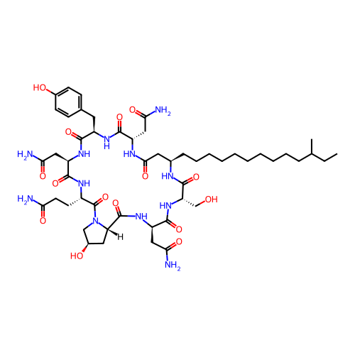 | SMILES | CCC(C)CCCCCCCCCC[C@@H]1CC(=O)N[C@H](C(=O)N[C@@H](C(=O)N[C@@H](C(=O)N[C@H](C(=O)N2C[C@@H](C[C@H]2C(=O)N[C@@H](C(=O)N[C@H](C(=O)N1)CO)CC(=O)N)O)CCC(=O)N)CC(=O)N)CC3=CC=C(C=C3)O)CC(=O)N |