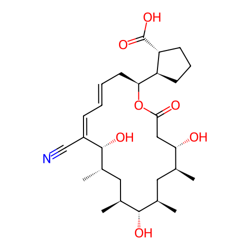 | SMILES | C[C@H]1C[C@H]([C@@H]([C@H](C[C@@H]([C@H](/C(=C\C=C\C[C@H](OC(=O)C[C@@H]1O)[C@@H]2CCC[C@H]2C(=O)O)/C#N)O)C)C)O)C |