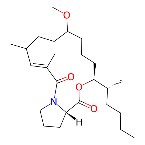 | SMILES | CCCC[C@@H](C)[C@@H]1CCCC(CCC(/C=C(/C(=O)N2CCC[C@H]2C(=O)O1)\C)C)OC |