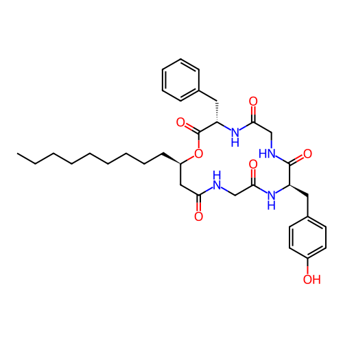 | SMILES | CCCCCCCCC[C@@H]1CC(=O)NCC(=O)N[C@@H](C(=O)NCC(=O)N[C@H](C(=O)O1)CC2=CC=CC=C2)CC3=CC=C(C=C3)O |
