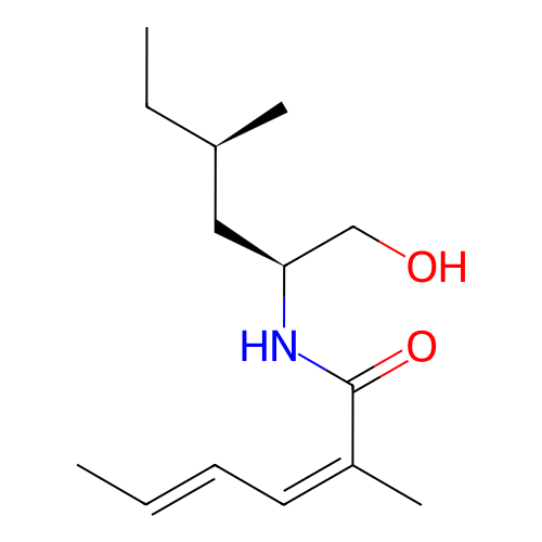 | SMILES | CC[C@@H](C)C[C@@H](CO)NC(=O)/C(=C\C=C\C)/C |