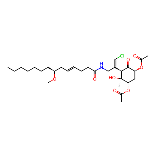 | SMILES | CCCCCCC[C@@H](C/C=C/CCC(=O)NC/C(=C/Cl)/[C@H]1C(=O)[C@H](C[C@@H]([C@@]1(C)O)OC(=O)C)OC(=O)C)OC |