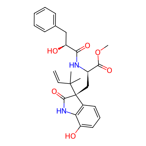 | SMILES | C=CC(C)(C)[C@@]1(C[C@@H](NC(=O)[C@@H](O)CC2=CC=CC=C2)C(=O)OC)C(=O)NC2=C1C=CC=C2O |