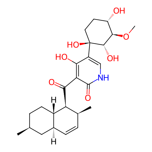 | InChI | InChI=1S/C25H35NO7/c1-12-4-7-15-14(10-12)6-5-13(2)18(15)21(29)19-20(28)16(11-26-24(19)31)25(32)9-8-17(27)22(33-3)23(25)30/h5-6,11-15,17-18,22-23,27,30,32H,4,7-10H2,1-3H3,(H2,26,28,31)/t12-,13-,14-,15-,17-,18-,22+,23-,25+/m0/s1 |