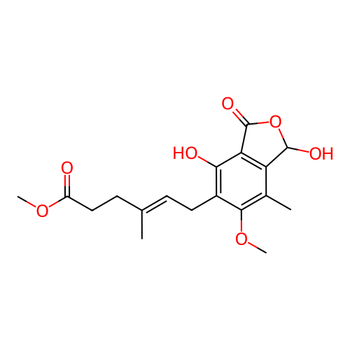 | NAME | 6-(5-methoxycarbonyl-3-methylpent-2-enyl)-3,7-dihydroxy-5-methoxy-4-methylphthalan-1-one |