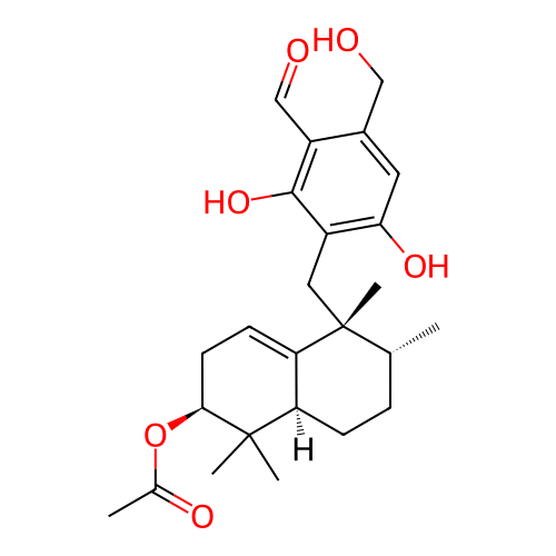 | InChI | InChI=1S/C25H34O6/c1-14-6-7-19-20(8-9-22(24(19,3)4)31-15(2)28)25(14,5)11-17-21(29)10-16(12-26)18(13-27)23(17)30/h8,10,13-14,19,22,26,29-30H,6-7,9,11-12H2,1-5H3/t14-,19-,22+,25-/m1/s1 |