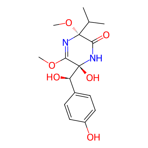 | SMILES | CC(C)[C@]1(C(=O)N[C@@](C(=N1)OC)([C@@H](C2=CC=C(C=C2)O)O)O)OC |