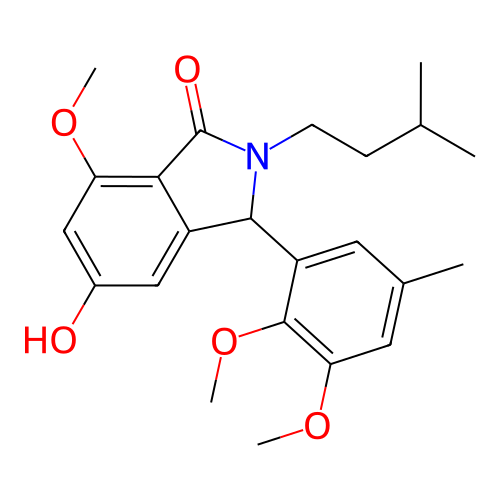| InChI | InChI=1S/C23H29NO5/c1-13(2)7-8-24-21(17-9-14(3)10-19(28-5)22(17)29-6)16-11-15(25)12-18(27-4)20(16)23(24)26/h9-13,21,25H,7-8H2,1-6H3 |