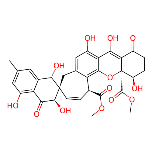 | InChI | InChI=1S/C32H30O13/c1-12-8-15-21(17(34)9-12)25(38)28(40)31(27(15)39)7-6-14(29(41)43-2)20-13(11-31)10-18(35)22-24(37)23-16(33)4-5-19(36)32(23,30(42)44-3)45-26(20)22/h6-10,14,19,27-28,34-37,39-40H,4-5,11H2,1-3H3/t14-,19+,27-,28-,31+,32+/m0/s1 |