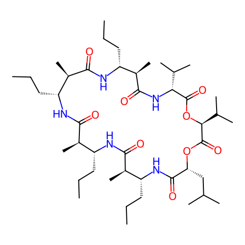 | SMILES | CCC[C@@H]1[C@H](C(=O)N[C@@H]([C@H](C(=O)N[C@@H](C(=O)O[C@H](C(=O)O[C@@H](C(=O)N[C@@H]([C@H](C(=O)N[C@@H]([C@H](C(=O)N1)C)CCC)C)CCC)CC(C)C)C(C)C)C(C)C)C)CCC)C |