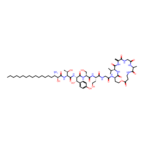 | SMILES | CCCCCCCCCCCCCCC[C@@H]([C@@H](C(=O)N[C@@H]([C@@H](C)O)C(=O)N[C@@H]([C@H](C1=CC=C(C=C1)O)O)C(=O)N[C@@H](CO)C(=O)N[C@@H](CCO)C(=O)NCC(=O)N[C@@H]2CCOC(=O)CCNC(=O)C(NC(=O)CNC(=O)C(=C)NC(=O)[C@@H](NC2=O)C(C)C)C)O)N |