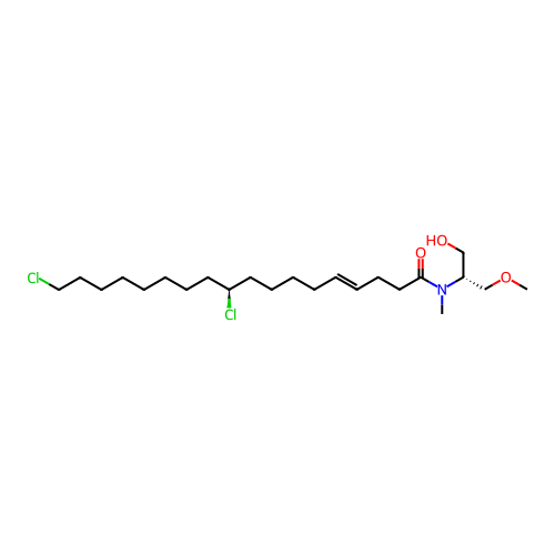 | SMILES | COC[C@@H](CO)N(C)C(=O)CCC=CCCCC[C@@H](Cl)CCCCCCCCCl |