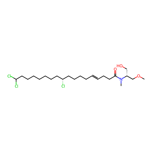 | SMILES | CN([C@H](CO)COC)C(=O)CCC=CCCCC[C@@H](CCCCCCCC(Cl)Cl)Cl |