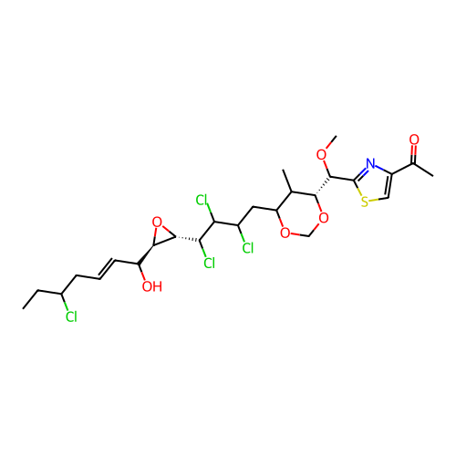 | SMILES | CCC(C/C=C/C([C@@H]1[C@H](O1)C(C(C(CC2C([C@@H](OCO2)C(C3=NC(=CS3)C(=O)C)OC)C)Cl)Cl)Cl)O)Cl |