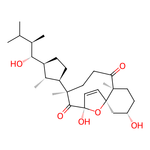 | InChI | InChI=1S/C28H44O6/c1-16(2)17(3)23(31)20-7-8-21(18(20)4)25(5)11-10-22(30)26(6)12-9-19(29)15-27(26)13-14-28(33,34-27)24(25)32/h13-14,16-21,23,29,31,33H,7-12,15H2,1-6H3/t17-,18-,19+,20+,21-,23-,25-,26-,27-,28-/m1/s1 |