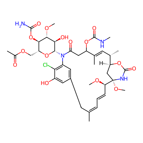 | InChI | InChI=1S/C39H53ClN4O15/c1-19-10-9-11-29(52-6)39(54-8)17-27(58-38(51)43-39)21(3)13-20(2)26(57-37(50)42-5)16-30(47)44(24-14-23(12-19)15-25(46)31(24)40)35-32(48)34(53-7)33(59-36(41)49)28(56-35)18-55-22(4)45/h9-11,13-15,21,26-29,32-35,46,48H,12,16-18H2,1-8H3,(H2,41,49)(H,42,50)(H,43,51)/b11-9+,19-10+,20-13+/t21-,26?,27-,28+,29+,32+,33+,34+,35+,39-/m0/s1 |