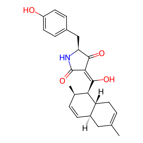 | InChI | InChI=1S/C24H27NO4/c1-13-3-10-18-16(11-13)7-4-14(2)20(18)23(28)21-22(27)19(25-24(21)29)12-15-5-8-17(26)9-6-15/h3-9,14,16,18-20,26,28H,10-12H2,1-2H3,(H,25,29)/t14-,16-,18-,19+,20-/m1/s1 |