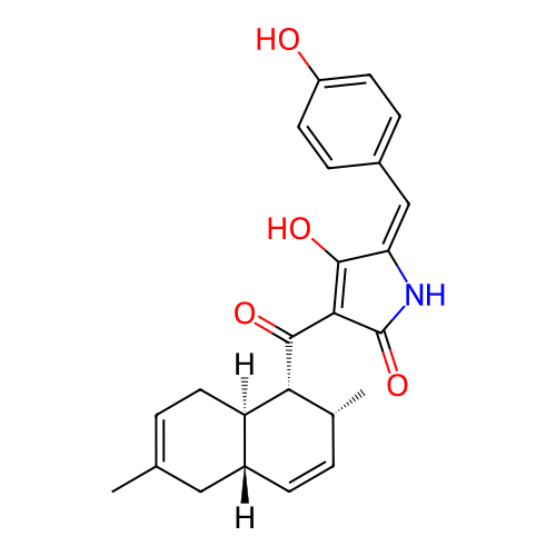 | InChI | InChI=1S/C24H25NO4/c1-13-3-10-18-16(11-13)7-4-14(2)20(18)23(28)21-22(27)19(25-24(21)29)12-15-5-8-17(26)9-6-15/h3-9,12,14,16,18,20,26-27H,10-11H2,1-2H3,(H,25,29)/t14-,16-,18-,20-/m1/s1 |