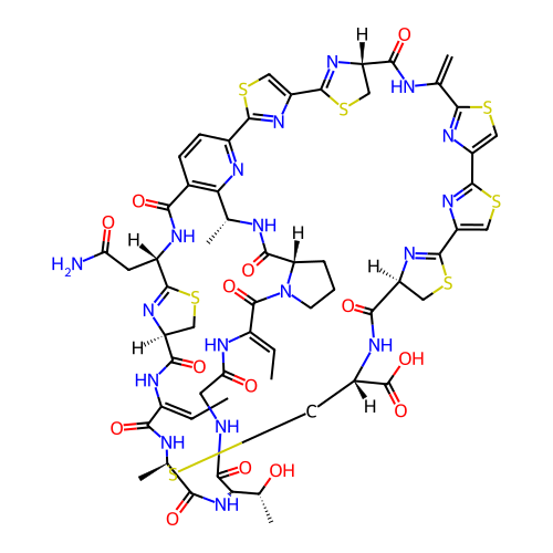 | SMILES | C/C=C\1/C(=O)N[C@@]2(C(=O)N[C@H](C(=O)NCC(=O)N/C(=C\C)/C(=O)N3CCC[C@H]3C(=O)N[C@@H](C4=C(C=CC(=N4)C5=NC(=CS5)C6=N[C@@H](CS6)C(=O)NC(=C)C7=NC(=CS7)C8=NC(=CS8)C9=N[C@@H](CS9)C(=O)N[C@@H](CS2)C(=O)O)C(=O)N[C@H](C2=N[C@@H](CS2)C(=O)N1)CC(=O)N)C)[C@@H](C)O)C |