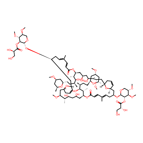 | SMILES | C[C@@H]1O[C@H](C[C@@H](C1)OC)CC[C@@H]([C@H](O)[C@@H]([C@H]2OC(=O)/C=C/C(=C/C[C@@H](C[C@H]3O[C@H](C[C@@H]([C@H]([C@H](C[C@H](C[C@H](OC(=O)/C=C/C(=C/C[C@@H](C[C@H]4O[C@H](C[C@@H]([C@H]([C@H](C[C@H](C2)O)O)C)OC)CC=C4)O[C@H]5OC[C@@H]([C@H]([C@@H]5OC(=O)[C@H](O)CO)OC)OC)/C)[C@H]([C@@H](O)[C@H](CC[C@@H]6O[C@H](C[C@H](C6)OC)C)C)C)O)O)C)OC)CC=C3)O[C@H]7OC[C@@H]([C@H]([C@@H]7OC(=O)[C@H](O)CO)OC)OC)/C)C)C |