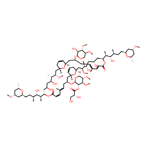| SMILES | C[C@H]1C[C@H](C[C@@H](O1)CC[C@H](C)[C@@H]([C@H](C)[C@@H]2C[C@@H](C[C@@H]([C@@H]([C@H](C[C@@H]3CC=C[C@H](O3)C[C@H](C/C=C(/C=C\C(=O)O[C@@H](C[C@@H](C[C@@H]([C@@H]([C@H](C[C@@H]4CC=C[C@H](O4)C[C@H](C/C=C(/C=C/C(=O)O2)\C)O[C@@H]5[C@H]([C@@H]([C@H](CO5)OC)OC)O)OC)C)O)O)[C@@H](C)[C@H]([C@@H](C)CC[C@H]6C[C@@H](C[C@@H](O6)C)OC)O)\C)O[C@@H]7[C@H]([C@@H]([C@H](CO7)OC)OC)OC(=O)[C@@H](CO)O)OC)C)O)O)O)OC |