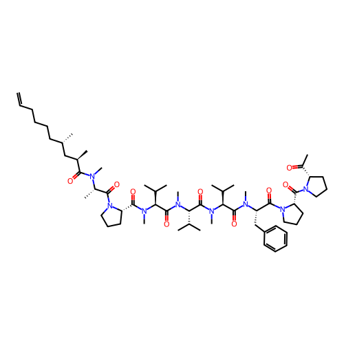 | SMILES | C[C@@H](CCCCC=C)C[C@@H](C)C(=O)N(C)[C@@H](C)C(=O)N1CCC[C@H]1C(=O)N(C)[C@@H](C(C)C)C(=O)N(C)[C@@H](C(C)C)C(=O)N(C)[C@@H](C(C)C)C(=O)N(C)[C@@H](CC2=CC=CC=C2)C(=O)N3CCC[C@H]3C(=O)N4CCC[C@H]4C(=O)C |