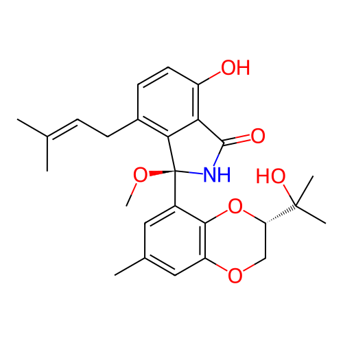 | SMILES | CC1=CC2=C(C(=C1)[C@@]3(C4=C(C=CC(=C4C(=O)N3)O)CC=C(C)C)OC)O[C@@H](CO2)C(C)(C)O |