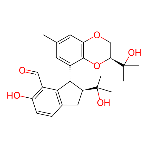 | InChI | InChI=1S/C25H30O6/c1-13-8-15(23-19(9-13)30-12-20(31-23)25(4,5)29)22-17(24(2,3)28)10-14-6-7-18(27)16(11-26)21(14)22/h6-9,11,17,20,22,27-29H,10,12H2,1-5H3/t17-,20-,22+/m0/s1 |